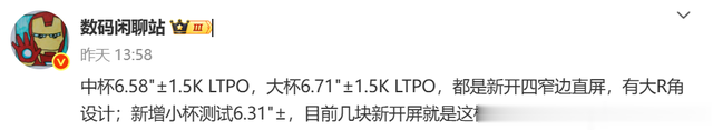 博主@数码闲聊站 爆料,荣耀 Magic8 系列这次开案三种屏幕,分别是 6.31 英寸、6.58 英寸和 6.71 英寸,其中 6.31 英寸是荣耀新增的小屏旗舰,它搭载天玑 9500 旗舰平台。