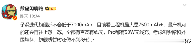 据@数码闲聊站 爆料,子系迭代旗舰都不会低于 7000mAh,其中也包括最受期待的 REDMI K90 系列。